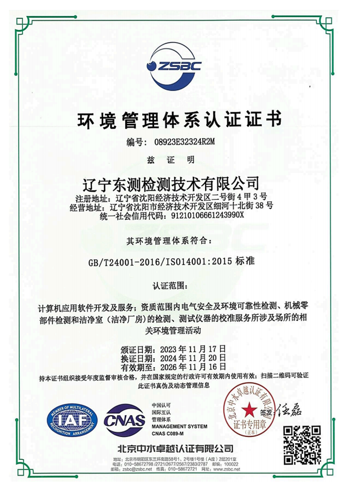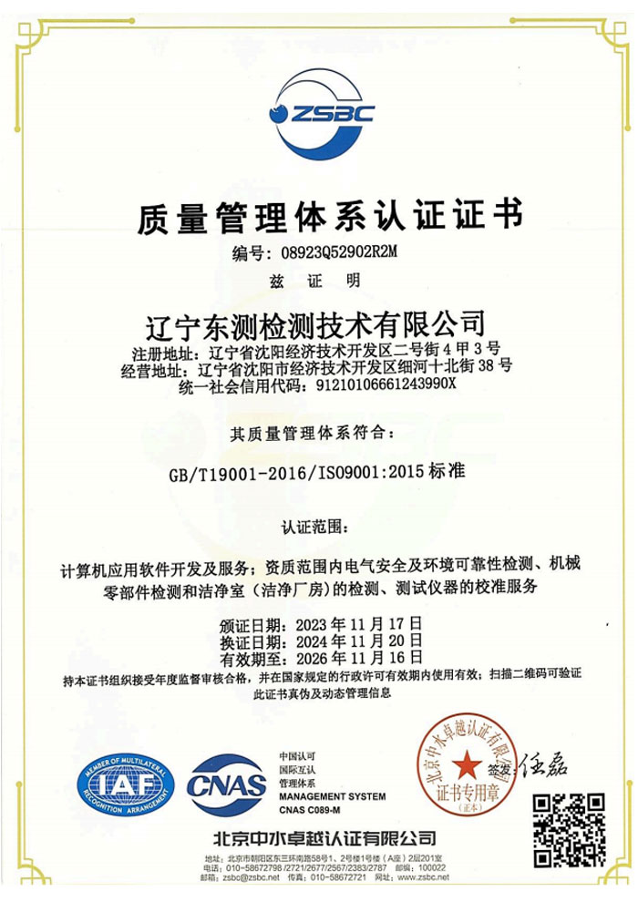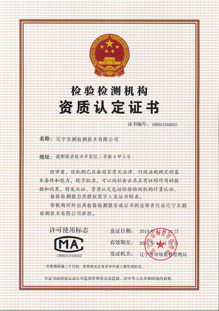 遼寧東測檢測技術(shù)有限公司成立于2007年6月21日,專注于為客戶提供計量、檢測以及技術(shù)咨詢與培訓(xùn)的第三方計量檢測機構(gòu)。遼寧東測檢測技術(shù)有限公司通過了中國合格評定國家認(rèn)可委員會認(rèn)可(CNAS),獲得檢驗檢測機構(gòu)資質(zhì)認(rèn)定(CMA),憑借著高效的服務(wù)網(wǎng)絡(luò)、雄厚的技術(shù)實力以及全面的業(yè)務(wù)范圍,本著“科學(xué)、公正、準(zhǔn)確、真誠”的質(zhì)量方針,為社會提供優(yōu)質(zhì)計量檢測服務(wù),打造國內(nèi)具有價值的計量技術(shù)機構(gòu)。